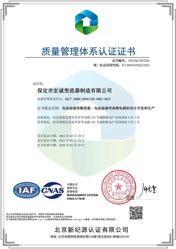 The Company has passed the comprehensive equipment testing from the third-party national center for power electronic technology. The product meets all tchnical performance requirements of JB/T8675.